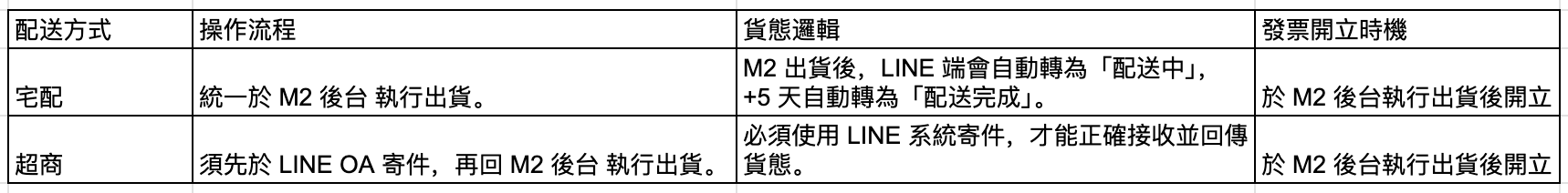 商家須統一於 M2 後台 執行最終出貨動作,發票於 M2 後台執行出貨後開立